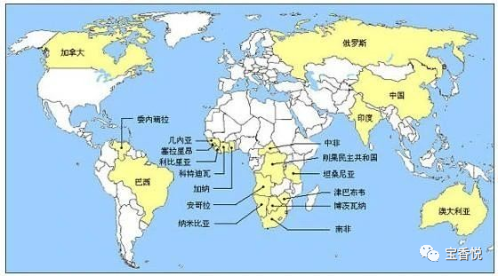 南亞和(hé)南美(měi)、非洲是彩色寶石的主要産地,特别是緬甸、巴西、斯裏蘭卡、馬達加斯加、俄羅斯、加拿大(dà)等國,擁有數種寶石的頂級礦藏,占世界寶石資源分布總量的95%以上(shàng)。着實令人羨慕,而資源比較貧乏的區(qū)域有歐洲、格陵蘭、北美(měi)東部和(hé)西非。