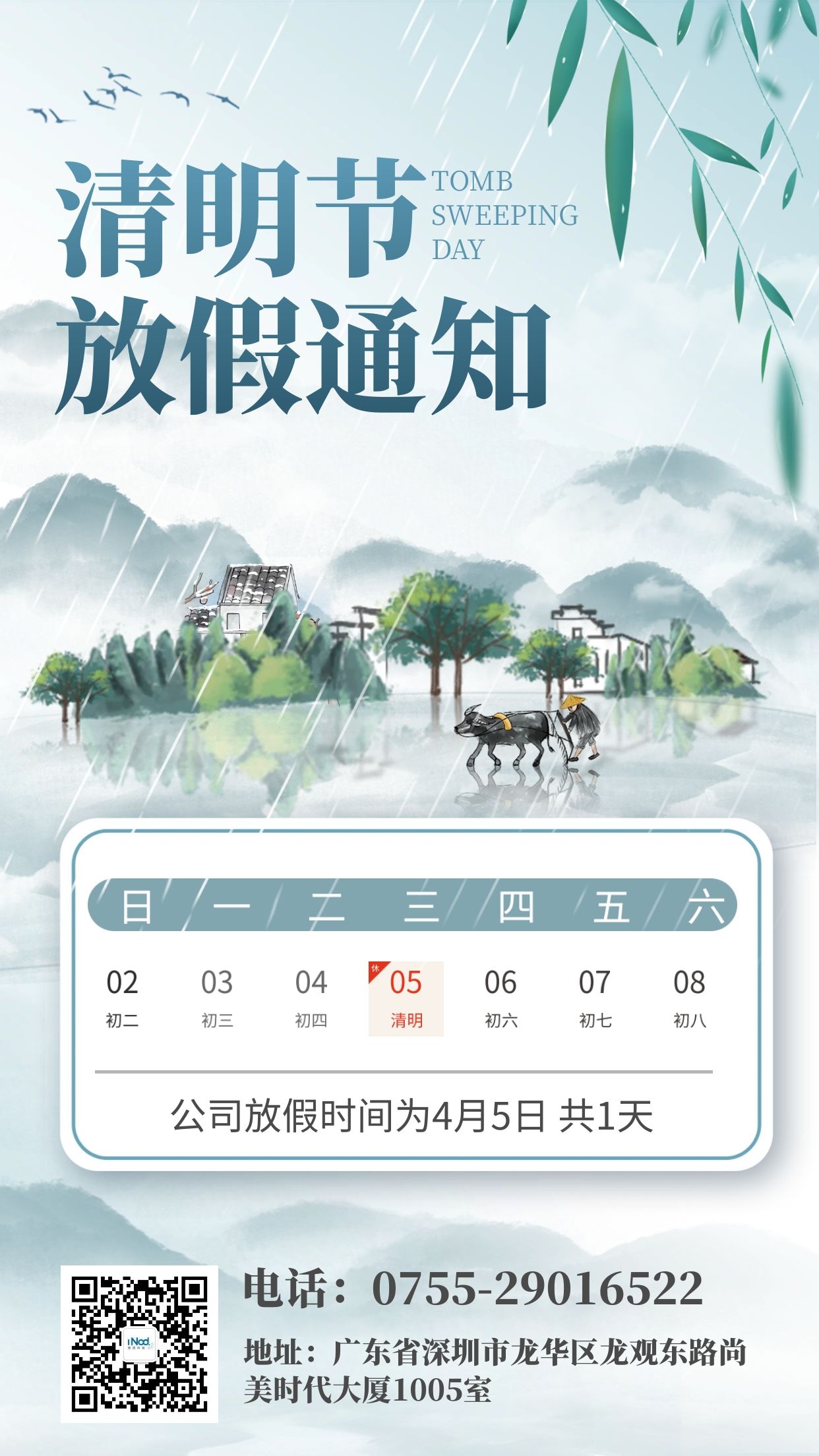 2023年4月5日(星期三)放(fàng)假一天