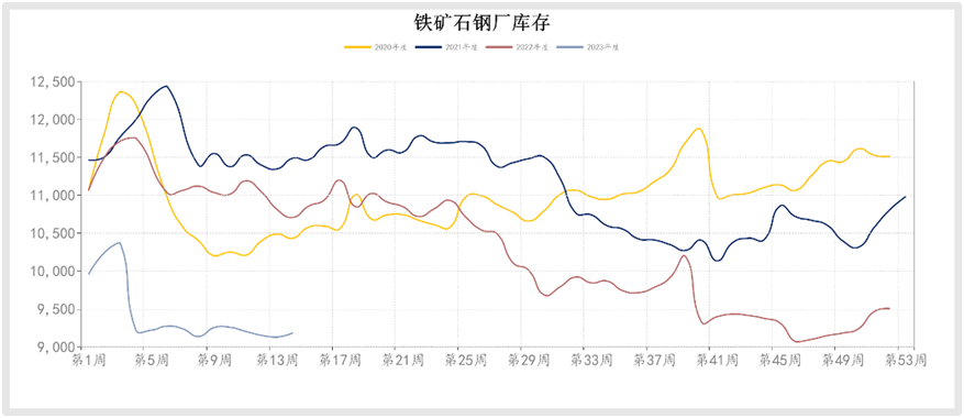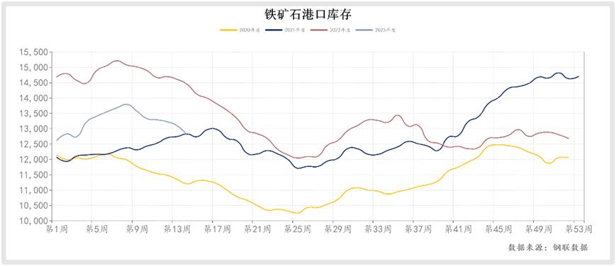 據mysteel數據,4月初的一周,其統計(jì)的247家鋼廠(chǎng)高(gāo)爐産能(néng)利用(yòng)率91.2%,日均鐵(tiě)水(shuǐ)産量245.07萬噸,距離近五年的最高(gāo)點,即2020年8月份的253.3萬噸,隻相差8.23萬噸。目前鋼廠(chǎng)鐵(tiě)礦石總庫存與庫銷比維持低(dī)位,45港口鐵(tiě)礦石庫存去庫308萬噸至1.32億噸。