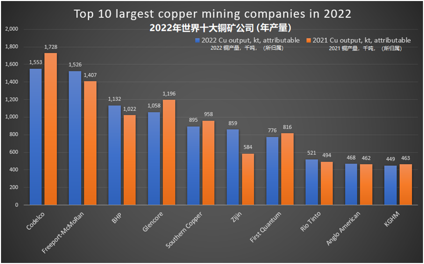 從(cóng)2022年銅礦産量增加的礦企中,可以看(kàn)出,自(zì)由港-麥克莫蘭公司(Freeport-McMoRan)在印尼的Grasberg礦山,必和(hé)必拓在澳大(dà)利亞的Olympic Dam礦山,紫金(jīn)礦業在剛果(金(jīn))的Kamoa銅礦,塞爾維亞Timok銅金(jīn)礦以及中國西藏巨龍銅礦......這(zhè)些(xiē)非南美(měi)地區(qū)的銅項目,成爲了(le)市場增量的重要組成。