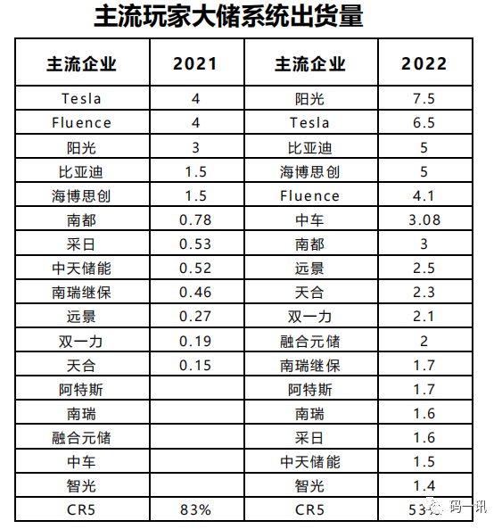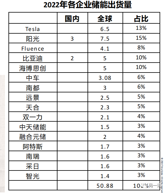 市場已形成一超多強格局,2023年頭部企業的儲能(néng)出貨量角逐進入20+GWh