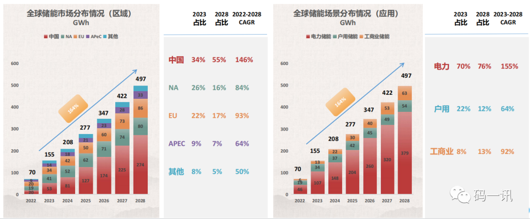 電力儲能(néng)會(huì)長期占據儲能(néng)市場的大(dà)頭,預計(jì)28年占整體市場的76%。