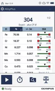 奧林(lín)巴斯手持式合金(jīn)分析儀專門(mén)分析檢測不鏽鋼、合金(jīn)的儀器,能(néng)快(kuài)速檢測出合金(jīn)的合金(jīn)牌号316、304等。